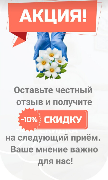 Нашла специалиста в яндекс картах , позвонила, сразу смогла записаться в удобное для меня время. У меня давно проблема между пальцами. Постоянно образуется мозоль который мешает при ходьбе. Специалист Марианна мне помогла с этой проблемой, аккуратно удалила, поставила межпальцевую разгрузку и дала дальнейшие рекомендации.